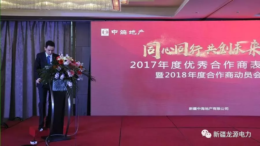 此次活動當天,新疆龍源電力工程有限公司獲得由中海地產為供應商頒發了“2017年度優秀合作商獎”獎項。